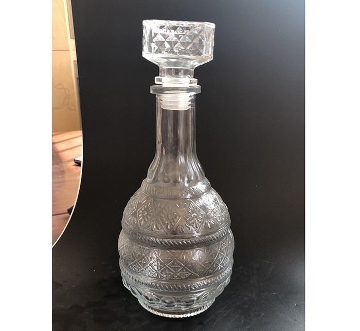蒙砂酒瓶是在制品玻璃上,粘附一定大小面積的玻璃色釉粉,玻璃瓶廠經(jīng)過580~600℃的高溫烘烤,使玻璃色釉涂層凝結(jié)在玻璃外表,并顯現(xiàn)出具有與玻璃主體不同顏色的一種裝飾辦法。粘附玻璃色釉粉,可用排筆涂刷,亦可用膠輥滾涂。經(jīng)過絲印加工,能夠得到蒙砂面的樓空圖案。 其辦法是:在玻璃制品外表上,絲印一層由阻熔劑構(gòu)成的圖案紋樣。